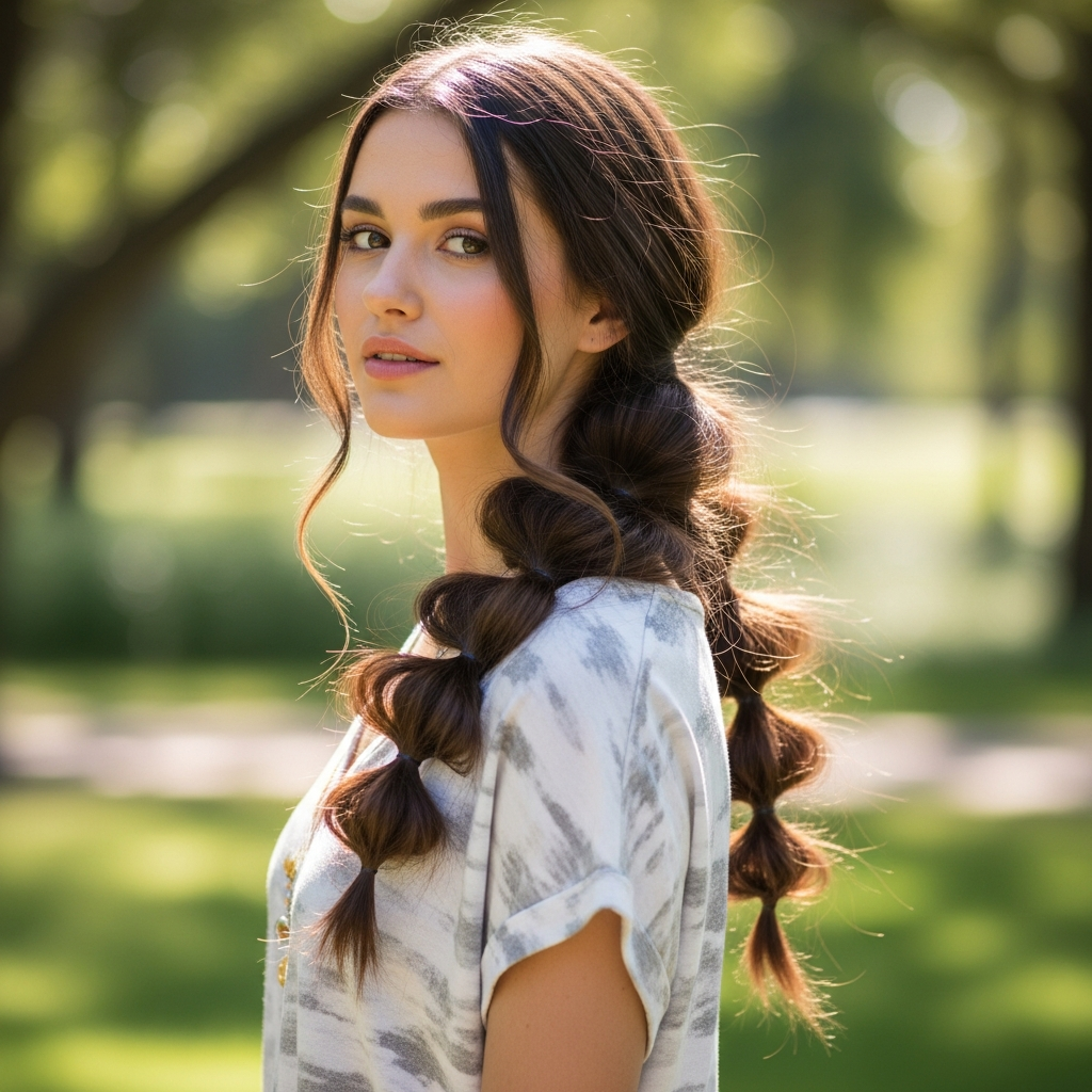 Bubble braids have taken social media by storm due to their ease and visual impact. By using small elastic bands at regular intervals down a ponytail and fluffing out the sections, you create a voluminous, playful look that stays secure during outdoor festivals or long summer hikes.
