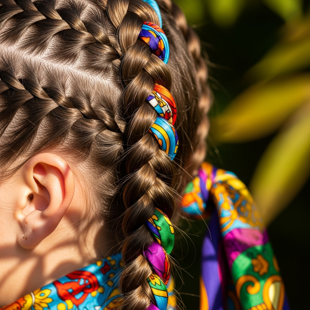 Incorporate a pop of color and pattern into your hairstyle by weaving a silk scarf into your braids or tying it around a low bun. This accessory adds a touch of Mediterranean flair and can protect your scalp from the sun while instantly elevating a simple outfit to something more curated and chic.