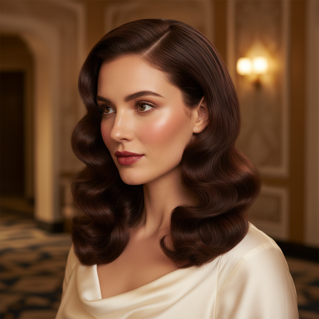 Hollywood waves are incredibly versatile and flatter most face shapes. They beautifully complement oval, heart, and square-shaped faces by softening angles and adding a touch of drama. For rounder faces, a deep side part can add length and balance.