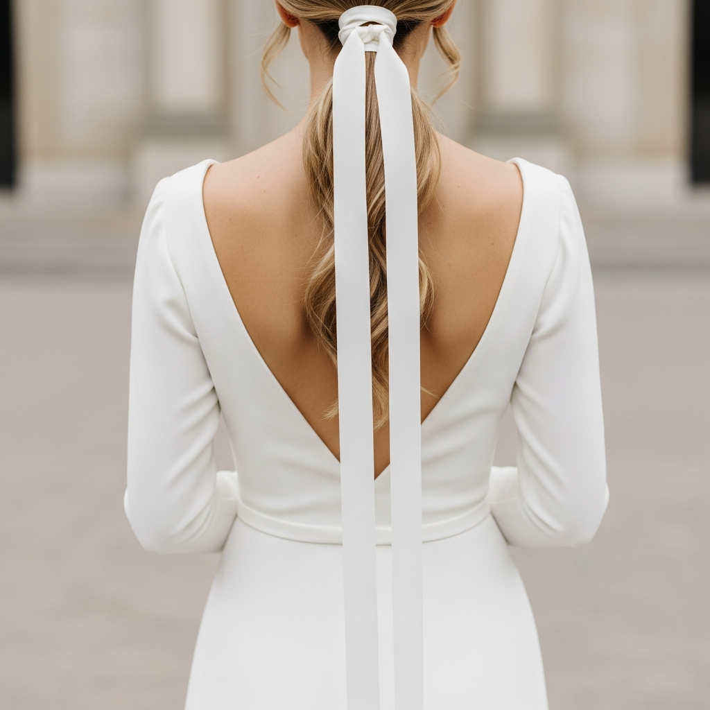 For the ultimate minimalist bride, a low ponytail tied with a simple silk ribbon or a thin metallic band is a chic and understated option. This style emphasizes clean lines and a healthy, glossy finish. It is particularly well-suited for high-neck gowns or dresses with dramatic back details. The low ponytail is effortless yet intentional, proving that sometimes less truly is more when it comes to bridal beauty.