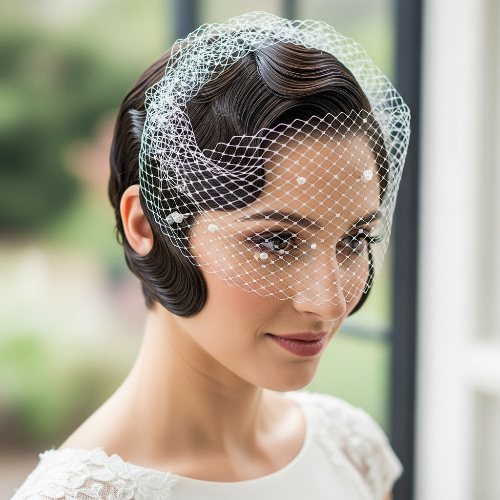 Finger waves bring a touch of 1920s Art Deco charm to the modern wedding. This style is particularly effective for brides with shorter hair or bobs, providing a structured and sophisticated look. The waves are sculpted close to the head using strong-hold gel to create a high-fashion, architectural effect. It is a bold choice that pairs beautifully with vintage-inspired lace or beaded gowns.