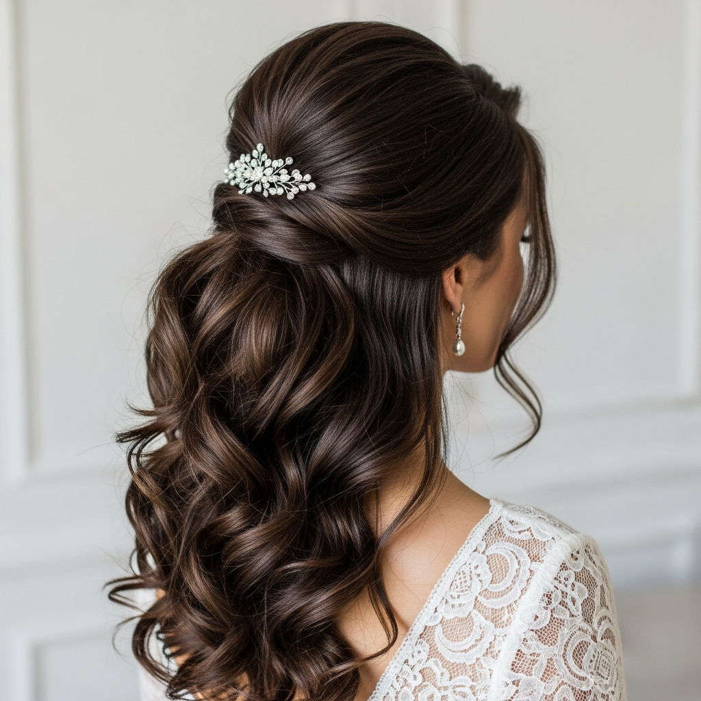 The half-up half-down hairstyle offers the best of both worlds, providing the security of an updo with the romance of flowing locks. The modern iteration features plenty of volume at the crown and soft, cascading curls. This look is highly adaptable and can be customized with braids or twists where the hair meets in the middle. It is a flattering choice for most face shapes and works beautifully with various hair lengths.